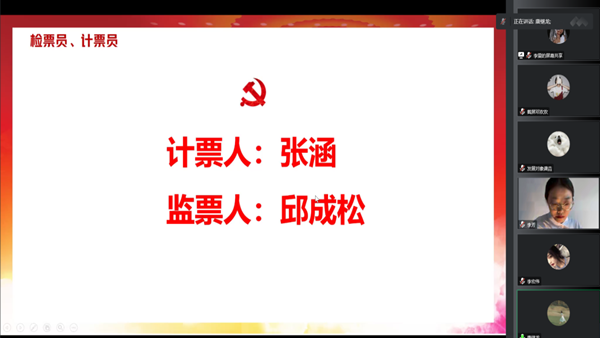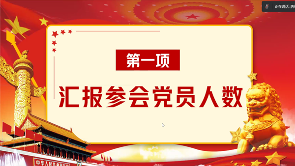 首先,由唐继龙书记宣读大会流程,随后纪检委员李芳同志就到会人员情况进行通报:本次大会应到党员59名,其中有表决权的正式党员31名,预备党员28名,因事请假0人。有表决权到会人数超过应到大会有表决权人数的半数,符合召开支部党员大会条件。