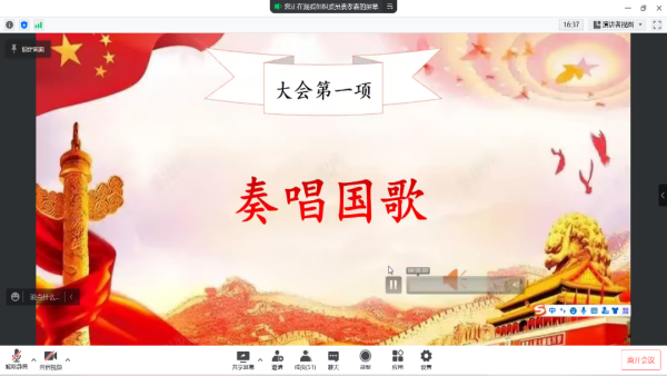 大会在庄严的国歌声中拉开序幕。