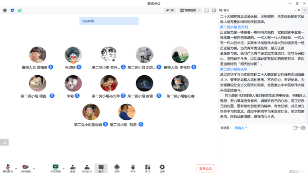 最后,第五党小组以“党的二十大报告关键词”为主题进行本次政治理论学习,陈欢同志以党的二十大关键词为引入点,讲到:学习宣传贯彻党的二十大精神是当前和今后一个时期全党全国的首要政治任务。我们要不断坚定历史自信,增强历史主动,为实现党的二十大提出的目标任务而团结奋斗。同时作为新时代党员,更要全面贯彻落实党的二十大会议精神,深刻把握中国式现代化的中国特色和本质要求,自觉在思想上、政治上、行动上同以习近平同志为核心的党中央保持高度一致,不断在提高自身修养上肩负时代使命,在增强责任担当中谱写时代华章。