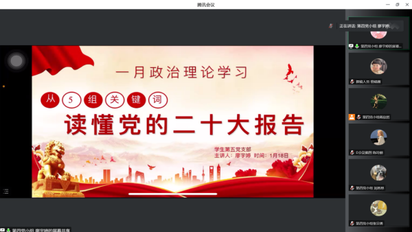 为进一步推动党的二十大精神学习走深走实,全面引导青年学子准确把握其思想精髓和核心要义,始终牢记为人民服务、为国奉献的责任担当。1月16日至18日,经济管理学院学生第五党支部以各党小组相互学习的形式于线上(腾讯会议)开展本月政治理论学习。