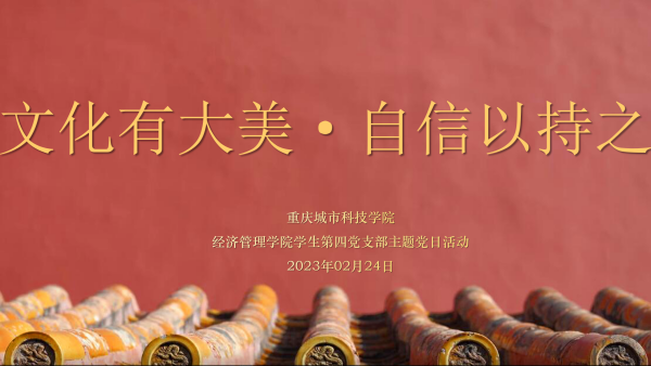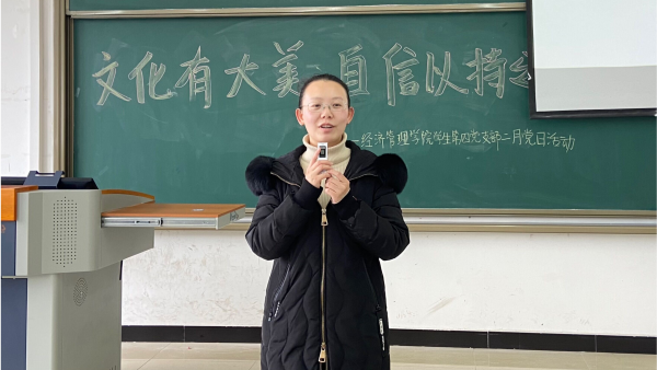 为进一步加强文化认识和文化自信,了解中华传统文化,感受传统文化的魅力,增强文化自豪感和民族自信心。2月24日中午,经济管理学院学生第四党支部采取“线上+线下”相结合的方式,于经管大楼502教室开展以“文化有大美,自信以持之”为主题的党日活动。本次会议由何弘洪同志主持,支部书记任雪羽及支部全体党员同志参加。