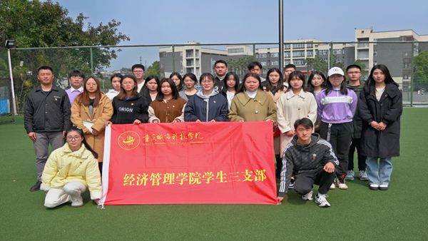 为深入学习党的二十大重要讲话精神,引导党员同志在思想上深刻认识党的二十大的重大意义,切实增强党员同志的自觉性和坚定性。2023年2月27日中午,经济管理学院学生第三党支部于主教足球场开展“奋进新征程,永远跟党走”党日活动,支部书记唐继龙、辅导员胡容老师及支部全体党员参加,本次活动由李雯同志主持。