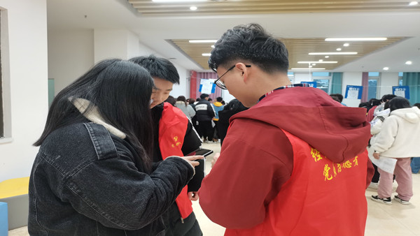 守望初心勇担当,笃定前行绽芳华。为助力活动有序开展,志愿者们积极响应负责人的号召,主动披上“红马甲”,化身行动“先锋队”,全力配合银行工作人员做好维持秩序,耐心讲解操作流程等工作。微光成炬,聚沙成塔,他们以实际行动践行“请党放心、强国有我”的铮铮誓言。