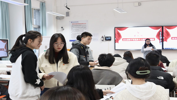 为深入学习宣传贯彻党的二十大精神,坚持用习近平新时代中国特色社会主义思想凝心铸魂,不断提升支部党员的党性素养。3月2日下午,经济管理学院学生第五党支部于主教206教室召开专题组织生活会与民主评议党员大会,本次大会以“线上+线下”相结合的方式开展。经济管理学院党总支宣传委员张峻铭、支部书记刘芳宏、副书记刘鑫渝及全体支部党员参加,本次大会由支部书记刘芳宏主持。