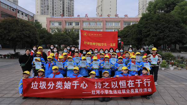 为认真学习习近平生态文明思想,贯彻落实党的二十大精神,有效发挥党建工作对垃圾分类的引领作用,践行低碳节约理念,树立时尚文明新风,提高垃圾分类知识的普及率,增强青少年的绿色环保意识。2023年3月4日,在第60个“学雷锋纪念日”来临之际,经济管理学院学生第一党支部联合红河小学2020级3、4班共同开展“童心向党促文明,垃圾分类我先行”志愿服务活动暨经济管理学院学生第一党支部主题党日活动。支部组织委员余婕妤、党员同志及入党积极分子代表参与。