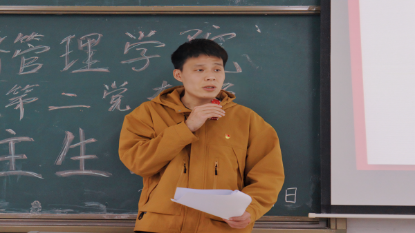 为深入学习贯彻党的二十大精神,进一步统一思想、统一意志、统一行为,积极引导新时代党员勇于自我革命、自我净化、自我完善、自我革新、自我提高,更好地朝着实现中华民族伟大复兴的宏伟目标勇毅前行。3月9日中午,经济管理学院学生第二党支部于六教211召开专题组织生活会与民主评议党员大会。经济管理学院党总支副书记邓丽纯、学生第二党支部书记张峻铭、副书记张颖及全体支部党员参加,本次大会由张峻铭同志主持。