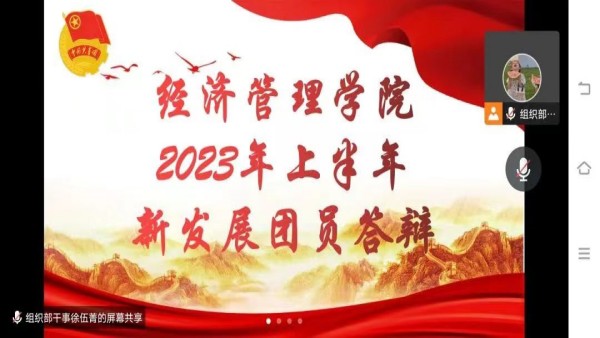 为壮大我院团员队伍,全面贯彻团中央的从严治团要求,严把发展团员的入口关,提升团员质量。经济管理学院于2023年4月2日下午14:30举行2023上半年新发展团员答辩活动。