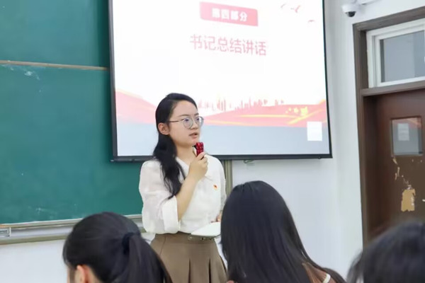 追逐榜样之光,点燃奋进之路。最后,支部书记刘芳宏作总结讲话。她谈到,作为一名共产党员应坚持政治理论学习,以理论联系实际,以榜样为标杆,让敢为、敢闯、敢干成为时代风尚。同时对支部全体党员同志提出严格要求,希望大家能够明确自己的人生定位,勤学苦练增强本领,将个人发展与祖国前途命运紧密结合,更好实现个人价值,努力成为可堪大用、能担重任的栋梁之材。
