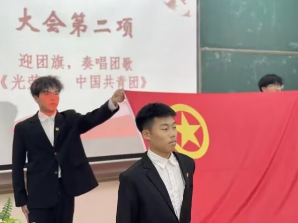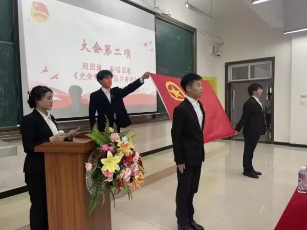迎团旗,唱团歌,大会在庄严的团歌声中拉开帷幕。