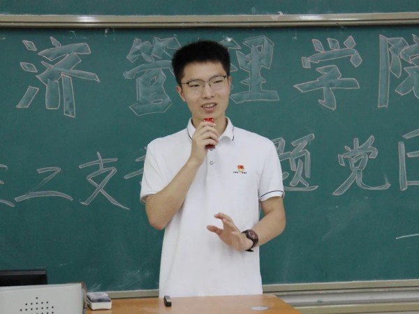 接着,毕业生党员们互相交流心得。毕业生党员蒲德光以自身的经历,讲述自己的入党历程,分享这一路走来的收获与感悟,并表示,在新的学习和工作岗位上将不负韶华,砥砺前行,延续经管学子的璀璨,让青春在全面建设社会主义现代化国家的火热实践中绽放绚丽之花。