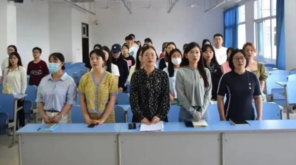 党课在庄严的国歌声中拉开序幕。