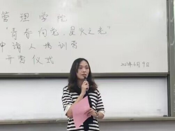 为深入学习二十大,贯彻习近平新时代中国特色社会主义思想,提升入党申请人思想认识,引领青年学生勇做民族复兴重任的时代新人,顺应发展的新潮流,2023年6月9日中午,经济管理学院第四期“青春向党,星火之光”入党申请人培训营开营仪式于主教105教室开展。本次会议由肖灯燕同学主持,第四期全体营员参会。