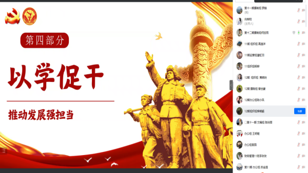 以学正风,笃行不怠。随后,何欣雨同学对提振学风、树立新风、建设作风、调研之风以及以学促干的深刻含义进行了详细讲解。她强调,“以学促干”首先在学,要务在干,当代青年生逢其时,要切实在理论“熔炉”中汲取思想、领悟真理,在学用结合上筑牢根本、淬炼党性;始终坚持“围绕中心、服务大局”的原则,切实把学习成效体现在做好本职工作中,用理想之光照亮奋斗之路,用信仰之力开创美好未来。