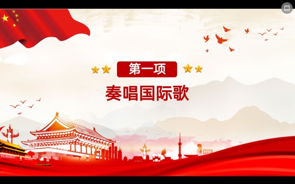 大会在庄严的国际歌中拉开序幕。