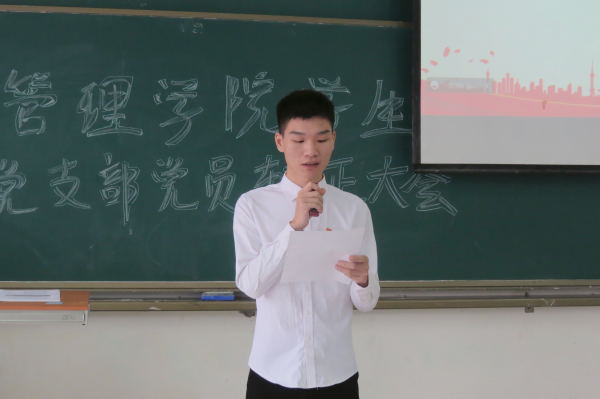 为贯彻落实“控制总量、优化结构、提高质量、发挥作用”的总方针,扎实推进发展党员工作,为党组织不断注入优质新鲜血液,增强基层党组织战斗力、凝聚力。6月29日中午,经济管理学院学生第五党支部于经管大楼402教室采用“线上+线下”相结合的方式召开预备党员转正大会,讨论关于廖启、刘思思等七名同志能否按期转正事宜,支部书记刘芳宏、副书记蔡萍及支部全体党员参加会议,此次大会由袁孝森同志主持。