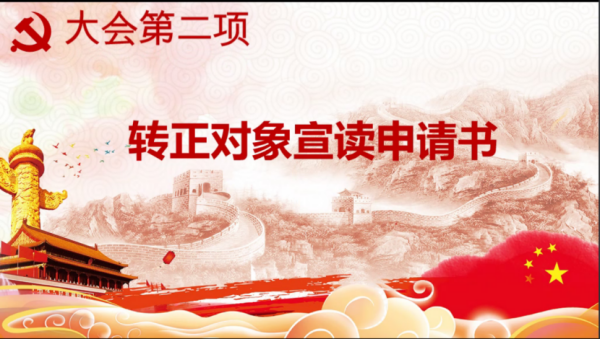 接着,待转正的预备党员同志依次向党组织详细的汇报其在预备期内思想、学习、工作、生活中的相关情况,并郑重提出转正申请。她们纷纷表明,党赋予她们光荣使命,在今后的各项工作中定当不忘初心、牢记使命,不断提升实践能力、增强党性修养,为支部建设工作积极奉献,为党和人民的事业奋斗终身,以奋进之姿共赴“赶考”之路,争做堪当民族复兴的时代新人。