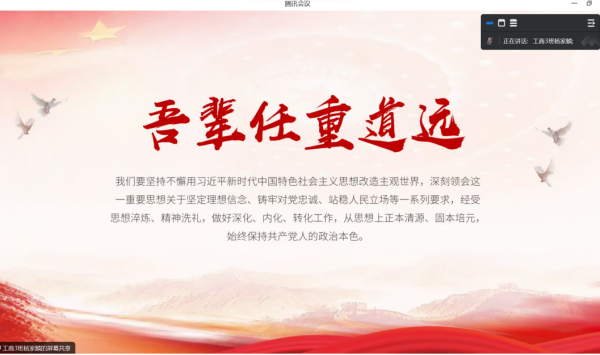 接着,杨家麟同志分别从“坚定理想信念、筑牢对党忠诚、站稳人民立场”三个方面内容详细介绍“以学铸魂”。他谈到,我辈任重而道远,要不断深入学习贯彻习近平总书记关于“两个结合”的重要论述精神,以知促行、以行促知;只有经受思想淬炼、精神洗礼,做好深化、内化、转化工作,从思想上正本清源、固本培元,才能永葆共产党人的政治本色。