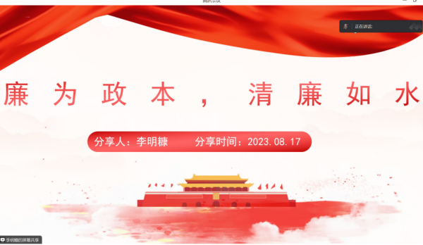 李明糠同志通过播放幻灯片和视频相结合的形式,带领各位党员同志学习“廉为政本·清廉如水”。他表示,为政清廉才能取信于民,秉公用权才能赢得人心。作为新时代的我们,要坚定理想信念,保持清醒的政治头脑,加强党性锻炼,坚守政治底线,自觉维护团结,做老实人、说老实话、干老实事,遵守道德底线和红线,加强道德修养,严格自律、以律促德,自觉接受组织和群众监督,在新征程赶考路上书写满意的答卷。