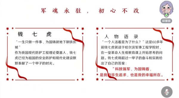 金戈铁马涉千里,且以丹心绘华夏。随后,邱慧丽同志带领全体党员同志观看八一精神主题视频。该视频记录了八一勋章获得者杜富国、钱七虎的故事与精神。全体党员在社会主义伟大实践中要不断学习八一精神,夯实理论基础,增强自身的责任感与使命感,坚定理想信念,担负起党和人民赋予的时代重任,让青春在全面建设社会主义现代化国家的火热实践中绽放绚丽之花。