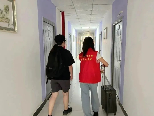 强化志愿引领,厚植文明理念。炎炎夏日,志愿者们身穿红色马甲,穿梭在宿舍多处角落,营造了“劳动光荣、奉献争先、礼貌服务,微笑指引”的服务氛围。行李虽重,双手汇聚力量;纸屑落地,弯腰拾起文明;炎热的酷暑下志愿者忙碌的背影是他们服务的热情和志愿精神的展现。一片“红的海洋”以崭新的姿态汇聚时代暖流,涵养文明价值、培育文明新风,彰显着社会文明的温度和高度。