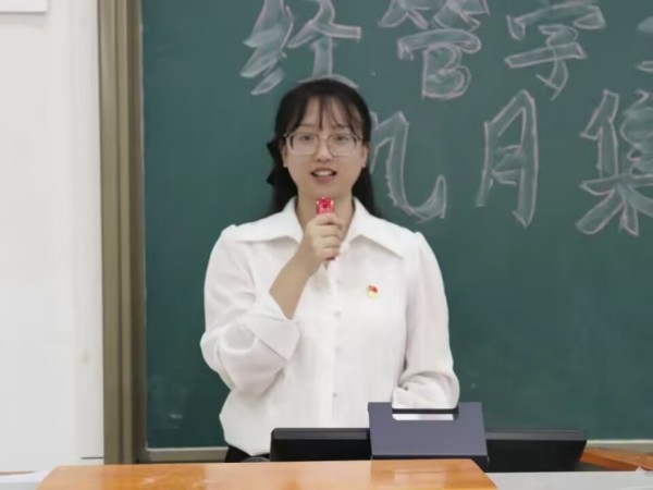 周庆同志以“启航新征程-推动教育强国建设下的时代我们”为主题进行分享。她表示,教育兴则国家兴,教育强则国家强,培养什么样的人、如何培养人以及为谁培养人,一直是习近平强调的重中之重。作为一名学生党员,无论身处何地,不论地位高低,都应以“天下兴亡,匹夫有责”的担当精神恪尽职守,一切从实际出发,实事求是,发挥学生党员先锋模范作用,始终紧扣中心正确导向和务实作风引领正确工作实践,发扬斗争精神、增强斗争本领,以新气象新作为推动新时代新征程中国现代化建设开好局起好步。