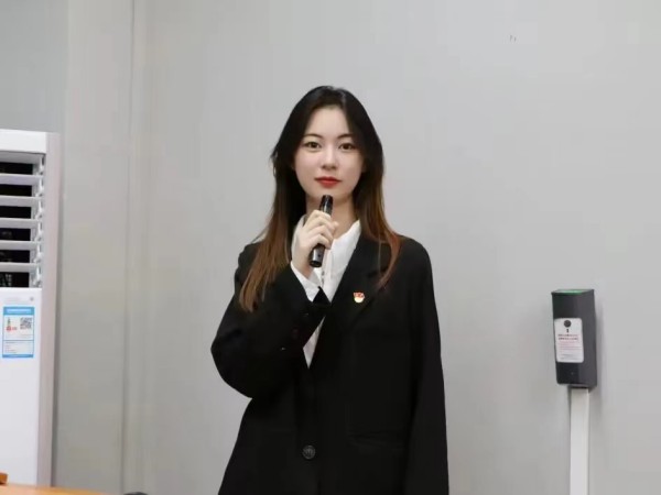 最后,支部书记袁小琴进行总结发言。她首先对新发展的预备党员表示热烈的欢迎与衷心的祝贺。其次,她谈到,一面党员就是一面旗帜,一枚党徽就是一份责任,党员同志们应时刻加强党章党史学习,积极践行社会实践服务,全面履行党员应尽义务,将党性注入血液、浸入骨髓、融入实践,为社会主义建设添砖加瓦。
