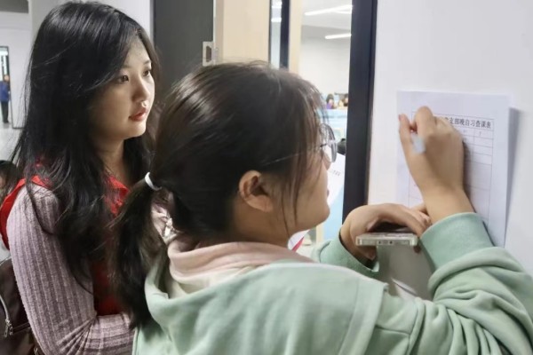学习内化于心,意识外化于行。接着志愿者们进入到自习教室,有序开展考勤工作,与各班学习委员核对出勤情况并通过现场扫描二维码签到的方式核实实际情况,以此确定该班学生是否有迟到、旷课等情况。