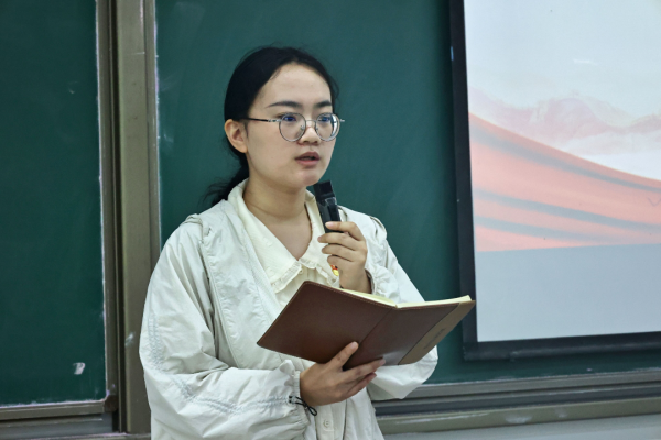 会议伊始,池金洋同志以习近平在庆祝中华人民共和国成立74周年招待会上的讲话为出发点,详细地介绍了讲话的核心内容。她谈到,习近平总书记深情回顾74年来取得的巨大成就,高度评价今年以来取得的来之不易、令人振奋的成绩,同时着眼于“前进道路上面临的风险挑战”,部署了重大战略任务、提出明确工作要求。作为青年党员,我们应当紧握习近平新时代中国特色社会主义思想这一理论法宝,自觉运用党的最新理论武装头脑、指导实践、推动工作,在学懂弄通做实上下功夫,内化于心、外化于形,不断提升政治能力和党性修养,为实现中华民族伟大复兴贡献出青春力量。