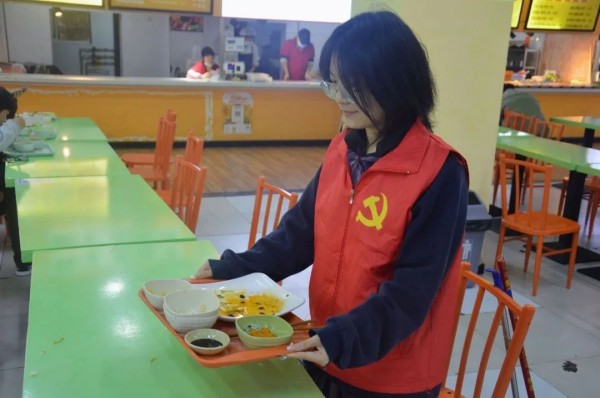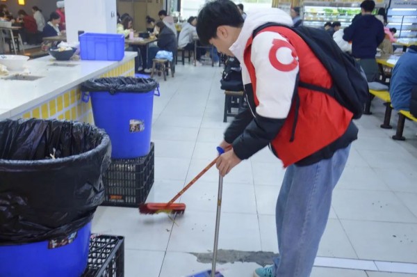 青春志愿行,应从小事始。发展对象们按时到达食堂、身着红色马甲,各司其职、相互配合,引导学生秩序用餐、文明用餐,有条不紊地为就餐的同学们提供服务,并配合食堂工作人员对地面进行清扫、清洗餐具,及时清理餐盘、擦拭桌面等工作。此次食堂志愿活动不仅为全体师生营造了干净舒适的就餐环境,还体现了发展对象践行“奉献、友爱、互助、进步”的志愿服务精神,用实际行动诠释自身的使命担当,展示了当代大学生的良好精神风貌。