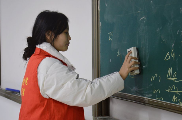 文明始于心,洁净践于行。各位发展对象不辞辛劳,以积极的态度投入到教室环境的清扫与爱护之中。他们齐心协力、紧密合作,打扫教室角落的垃圾,擦洗布满粉尘的黑板,清理课桌底下的纸屑,坚持做到不留死角、不留盲区,努力做到发现一处、清理一处。各位发展对象充分发扬了不怕脏、不怕累的优良传统作风和团结协作的良好精神风貌,更用自身行动践行了志愿者服务精神。