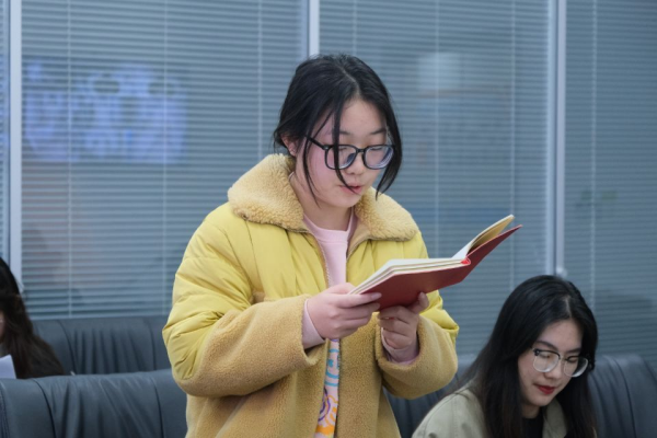 落其实者思其树,饮其流者怀其源。会议伊始,况心玲同志带领全体发展对象全面了解习近平文化思想的内容,深刻认识习近平文化思想提出的意义,切实加强习近平文化思想的落实。她提到,“习近平文化思想,是新时代党领导文化建设实践经验”的理论总结,是对马克思主义文化理论的丰富和发展,习近平文化思想内涵丰富,思想深邃,博大精深,为我们在新时代新征程继续推动文化繁荣、建设文化强国、建设中华民族现代文明提供了强大思想武器和科学行动指南。况心玲同志表示,作为共产主义接班人的我们,更应该肩负起新的文化使命,深入学习领会习近平总书记关于文化建设的新思想新观点新论断,将其贯彻落实到文化建设全过程各方面。