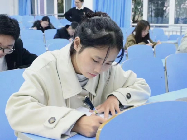 以学铸魂,初心向党。考察伊始,发展对象们在经管学院大楼211教室隔排就坐,进行笔试考察。本次笔试采取闭卷形式,考试内容主要包括党章党史、党的二十大精神、时事政治热点等相关知识点,着重考察发展对象近期理论学习成果以及对党的相关知识的了解与掌握程度。希望发展对象以此次考试为契机,强化理论学习,提升理论素养,不断加强党性修养、端正入党动机,以实际行动争取早日加入中国共产党。