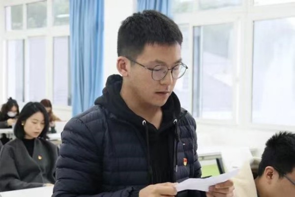 为进一步加强青年党员队伍质量建设,不断增强党支部的凝聚力和战斗力,永葆党员队伍的先进性和纯洁性,12月15日中午,经济管理学院学生第二党支部于经管学院大楼502教室召开支部党员大会,讨论表决关于陈余垚等6名同志发展为中共预备党员事宜。此次大会严格按照组织程序,在经过组织考察、政治审查、短期培训、广泛听取党内外群众意见的基础上召开。支部书记刘鑫渝、副书记张颖及全体支部党员同志参加,此次大会由王明菊同志主持。