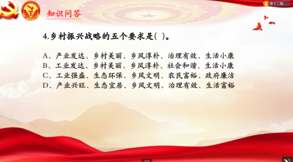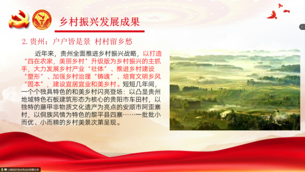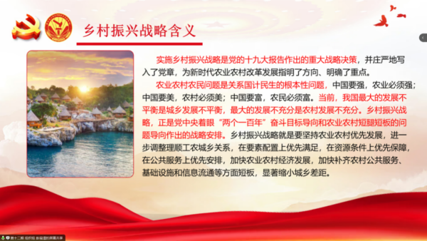 创新发展,共筑美好。随后,余雨含同学以相关视频为切入点,详细阐述了乡村振兴发展成果以及当代青年与乡村振兴的密切联系。她提到,乡村振兴战略实施以来我国乡村产业实现新发展、乡村生态展现新气象,广大农民获得感、幸福感、安全感大幅提升。乡村振兴是广大青年大有可为的舞台,作为入党积极分子应勇于担当、积极作为,努力寻找解决问题的有效途径和方法,奏响全面乡村振兴的激昂旋律。