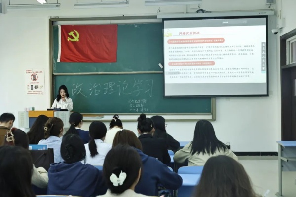 为深入了解国家政策法规和核心价值观,学习网络安全,认识到网络空间在政治、经济等方面的重要性,引导支部党员同志积极参与到国家发展中去,3月28日下午,经济管理学院学生第五党支部以“线上+线下”相结合的方式于经管学院大楼401教室开展三月政治理论学习。支部书记杨青,副书记蔡萍及支部全体党员参加,此次活动由凌小蝶同志主持。