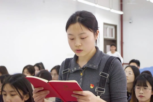 接着,韩莹同志向党组织汇报了个人在预备期间思想、学习、工作等方面的相关情况,并庄重地向党组织提出转正申请。她表示,今后要以党员的标准严格要求自己,用终身践行入党誓词。同时要自觉锤炼自身党性修养,提高政治素养,主动发挥党员的先锋模范作用,不忘初心、牢记使命,真正做到全心全意为人民服务的宗旨。