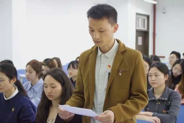 为做好党员发展工作,加强党组织队伍建设,增强党员队伍的生机与活力,3月28日下午,经济管理学院学生第五党支部于经管学院大楼401教室召开预备党员转正大会,讨论关于韩莹同志按期转正事宜。支部书记杨青,副书记蔡萍及支部全体党员同志参加,此次大会由池金洋同志主持。