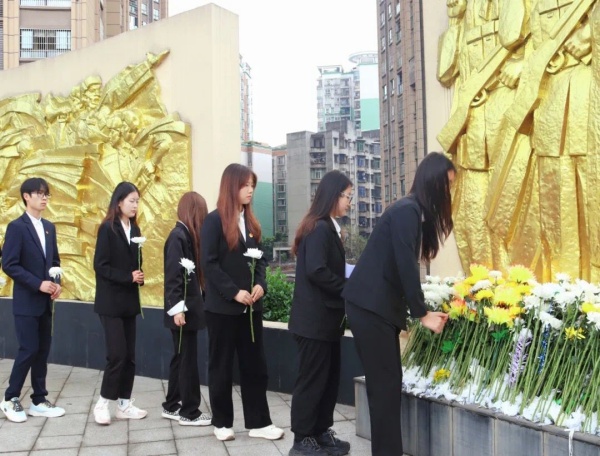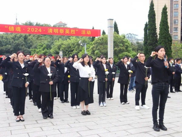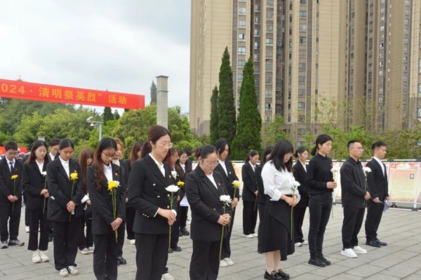 淬英雄之心,塑红色精神。在烈士碑前,全体师生代表整齐列队,庄严肃立,向革命烈士默哀致敬。默哀期间,现场一片寂静,只有微风轻轻吹过,仿佛在诉说着革命先烈的英勇事迹,同时希望师生代表通过追思先人,缅怀先烈的丰功伟绩,继承先烈遗志,铭记历史使命,在人生的征程中勇往直前、继续前行,为建设美好的未来而努力奋斗,让英烈的牺牲和奉献永远被铭记和传承。