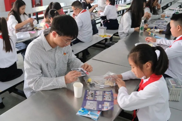 感悟三线精神,引领青春实践。紧接着,党员志愿者们自愿分成若干组,带着同学们开展各种益智游戏。在同学们的积极配合和志愿者的陪同下,同学们完成了与三线精神主题紧密结合的一幅幅趣味十足的手工、绘画作品。随后,志愿者和同学们来到网球场进行了投弹比赛,比赛过程中同学们笑声不断,收获成就感满满,志愿者们也深刻感受到了志愿活动的意义所在。