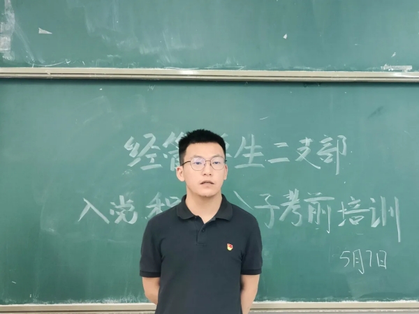 为深入学习贯彻习近平新时代中国特色社会主义思想,切实加强党的组织建设,确保党员发展质量。2024年5月7日中午,经济管理学院学生第二党支部于经管学院大楼305教室召开入党积极分子考前培训会,此次会议由支部书记刘鑫渝同志主讲,支部全体入党积极分子参加。
