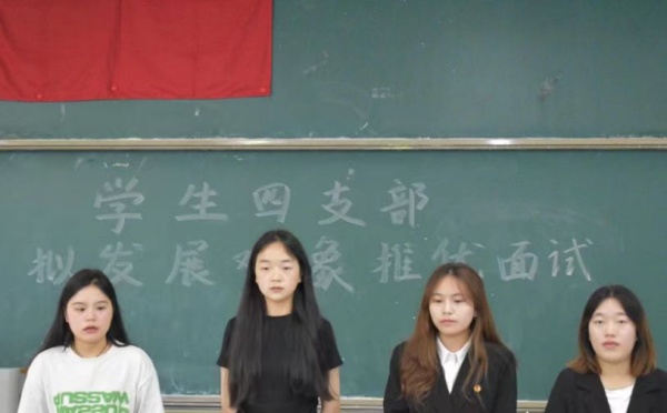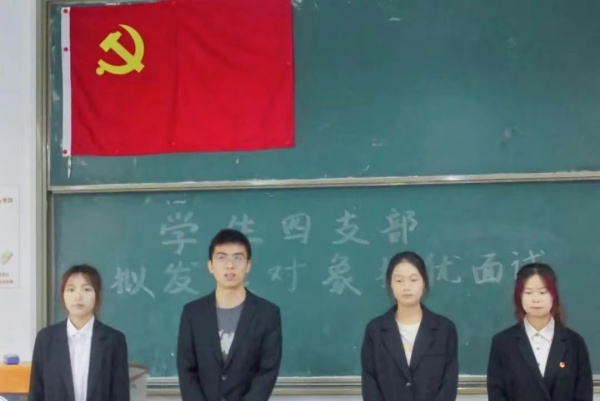 5月13日中午,在经管学院大楼301教室进行面试环节。面试议程分为自我陈述和现场提问先后两个环节。入党积极分子们分别从思想认识、学习情况、工作经历、社会实践等方面依次进行了综合汇报。支部各候补委员结合入党积极分子个人的基本情况,从思想动态、价值观、未来规划等方面进行提问。通过互动问答和交流,支部书记任雪羽、副书记张纪梦及支部各候补委员深入了解其思想动态、工作态度和发展潜力,从多个角度对入党积极分子进行综合评价。