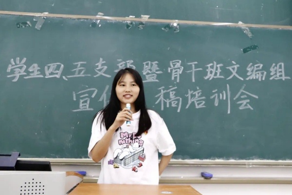涵养思想底蕴,筑牢知识高地。最后,文编组组长雷小红同志对本次培训会进行总结。她提到,此次培训内容充实且具有重要意义,希望各位小组成员能够从中有所收获,并将所学知识切实运用到日后工作中,不断提高其撰稿能力和综合素养,在实践中加深对新闻稿写作的理解,打好“理论桩”,补足“精神钙”,筑牢“思想魂”,增强责任感与使命感,用青春力量推动各支部、以及骨干班宣传工作再上新台阶。