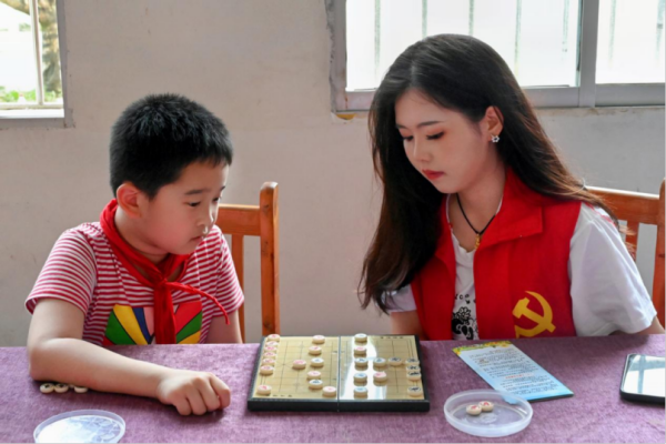 凝心聚力强党性,志愿薪火永相传。紧接着,党员志愿者同孩子们一起组队进行了各种趣味比赛,在象棋、五子棋、跳棋等智力游戏的头脑风暴中,孩子们展现出了惊人的专注力和逻辑思维能力;也在跳绳、乒乓球、篮球等体力大比拼中展现了他们的凝聚力和向心力。支部党员同志纷纷表示,通过此次“川渝情牵留守·爱暖童心圆梦”主题党日活动更加明白了青少年儿童是强国建设、民族复兴伟业的接班人和未来主力军。作为新时代青年党员,要充分发挥党员的先锋模范作用,将志愿者精神落到实处,为特别的“留守”送去特别的关爱。同时,青年党员要以崇高的理想走好远征道路;以“笃行之步”走稳逐梦征程;以挺膺担当的姿态奔赴“青春之约”。