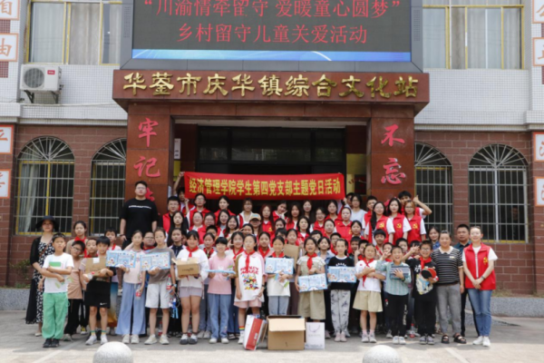 为进一步充分发挥基层党组织的战斗堡垒作用和党员干部的先锋模范作用,增强党员队伍的党性修养和社会责任感,5月17日,经济管理学院学生第四党支部联合华蓥市妇女联合会、华蓥市人民法院溪口法庭、华蓥市庆华镇宣传文化体育服务中心在华蓥市庆华镇江华社区开展以“川渝情牵留守·爱暖童心圆梦”为主题的党日活动。本次活动由袁园同志主持,支部书记任雪羽、全体党员同志、拟发展对象及部分入党积极分子参与。