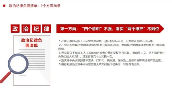 紧接着,周小勤围绕《中国共产党纪律处分条例》中的生活纪律负面清单进行深入解读。她指出,党的纪律是全体党员必须遵守的行为规则,是维护党的团结统一、完成党的任务的保证,全体党员要把党的纪律内化为积极健康生活的行为习惯,认真学习并严格遵守条例,不断增强政治意识、廉洁意识,树立纪律意识,经受住各种风险与考验,永葆中国共产党人的政治底色。