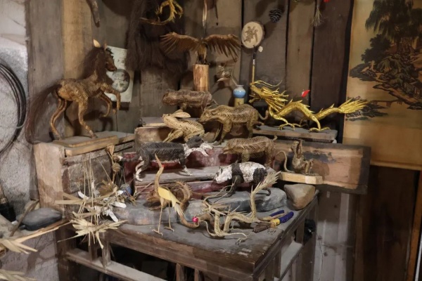 一把剪刀,一双巧手,流传千年的“指上非遗”,变幻编制出大千世界。余木兵爷爷从12岁开始学习棕编,已经坚持了60多年,他的手艺从祖辈传下来,传到他已经是第五代了。“老祖宗留下来的手艺不能丢!”余爷爷说到,他一直致力于把非遗棕编技艺发扬光大,他走进学校,为孩子们传授棕编技艺,在互联网兴起的时代,他坚持每天固定直播,目前已拥有超过200万的粉丝量。走进余爷爷的工作室,仿佛进入了一个棕编的艺术殿堂,各种精美的棕编作品琳琅满目,冬奥吉祥物“冰墩墩”、神舟号飞船、摘星星回来的航天员、花鸟鱼虫……还有各种精妙的玩具,会跳舞的小竹人,能鸣叫的蝉宝宝,一件件工艺品仅由最常见的棕树叶编制而成,每一件都凝聚着余爷爷的心血和智慧。