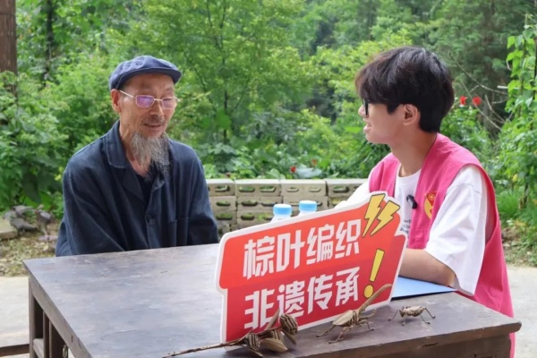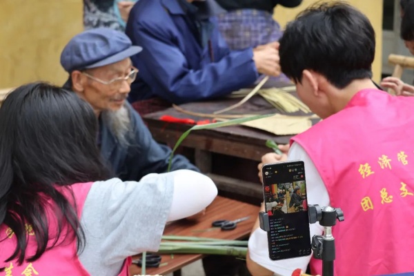 同时,传承团的成员们积极利用新媒体方式拓宽非遗文化传播的渠道,志愿者们化身“带货主播”,通过幽默风趣的语言、生动活泼的现场展示,在直播间向全国网友推介由两位爷爷亲手编织的各类手工艺品,呼吁大家为匠心传承贡献一份力量。