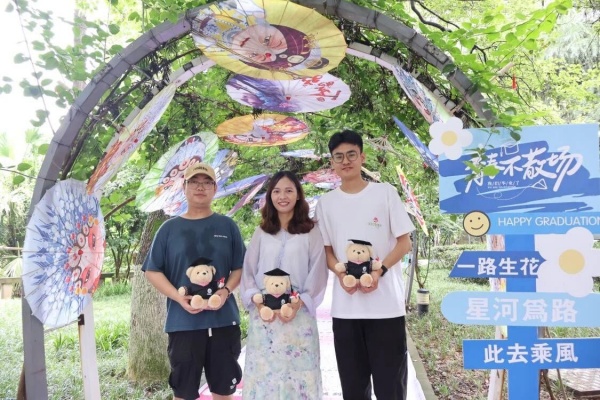 毕业需要仪式感,活动现场还设置了毕业生姓名喷绘、“一路生花”毕业生欢送长廊、毕业流沙签到处、鲜花打卡墙等多个打卡点,让毕业生们在最爱的这片土地定格大学时光,记录下此刻最炽热的青春年华。