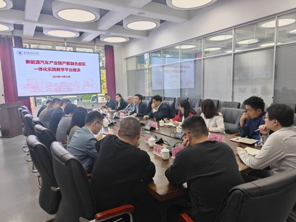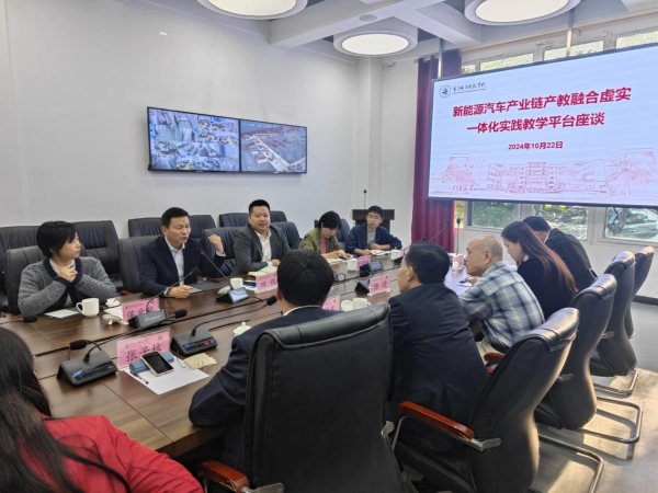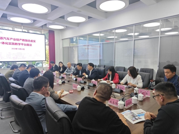参观结束后,双方就新能源汽车产业链产教融合虚实一体化实践教学平台的建设进行深入研讨交流。座谈会上,刘学民首先致辞,他详细介绍了我校与新道科技有限公司校企合作的历史渊源,以及建设新能源汽车产业链产教融合虚实一体化实践教学平台的构想与展望。刘学民表示,该平台旨在通过学科建设、实地调研与操作相结合的方式,为学生提供更加贴近实际产业需求的学习体验,培养具备实践能力和创新精神的新能源产业链的专业人才,争取成为西部示范基地标杆。