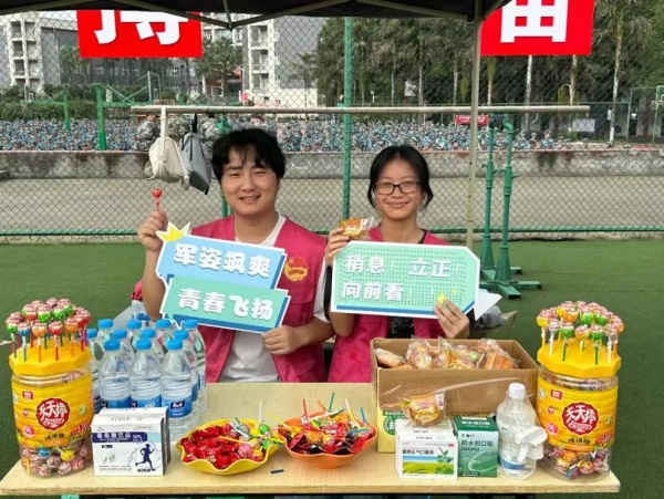 在军训期间,经济管理学院学生会在军训场地设立了军训供给站,帮助新生们缓解军训带来的疲惫与不适,提升他们的体能与精神状态,确保新生们能够以饱满的精神状态完成军训任务。